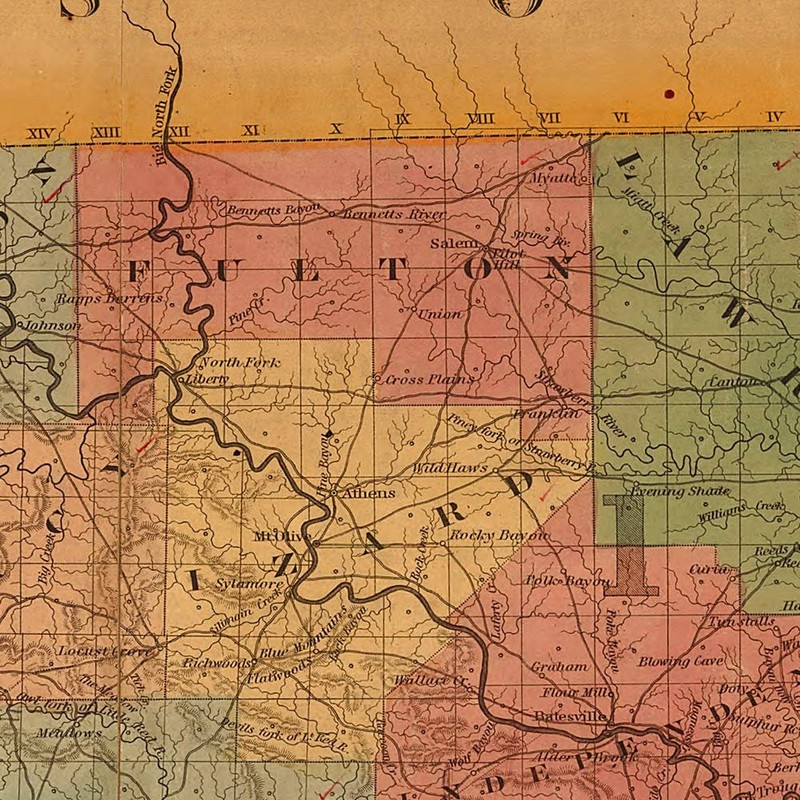 Antiguos Maps - State Map of Arkansas by George Cram Circa 1854 - Measures 24 in x 32 in (610 mm x 813 mm)