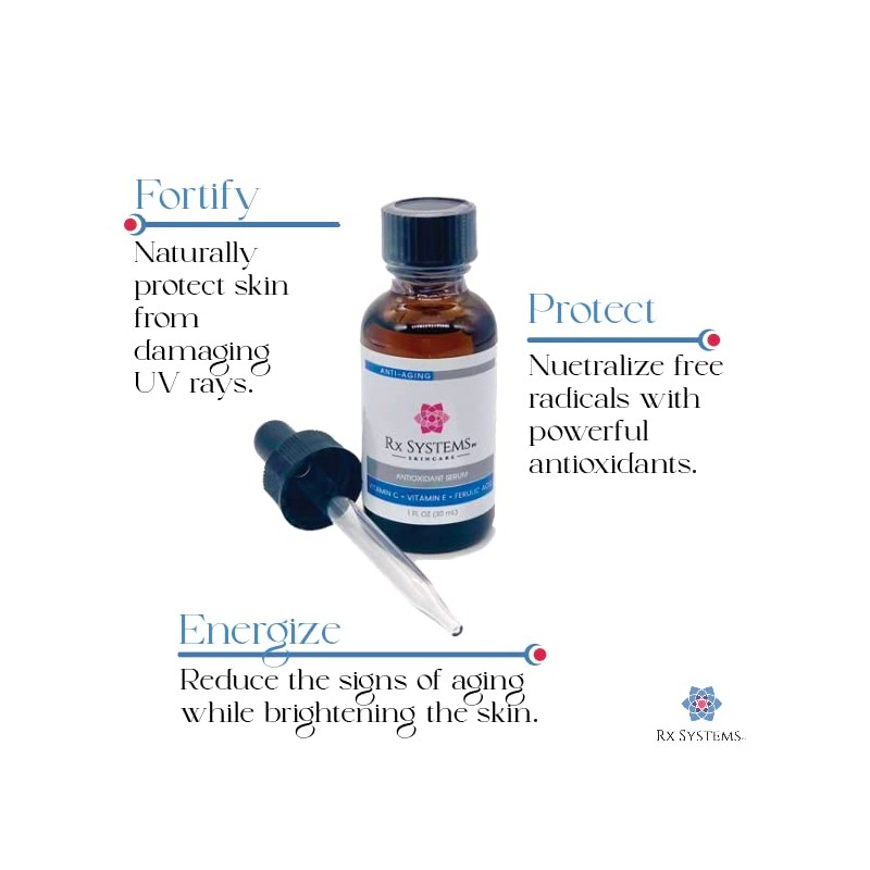 Antioxidant Serum C - 20% Vitamin C Face Serum for Glowing Skin, Anti-Aging, UV Protection - Reduces Hyperpigmentation, Helps Heal Blemishes - RX Systems PF