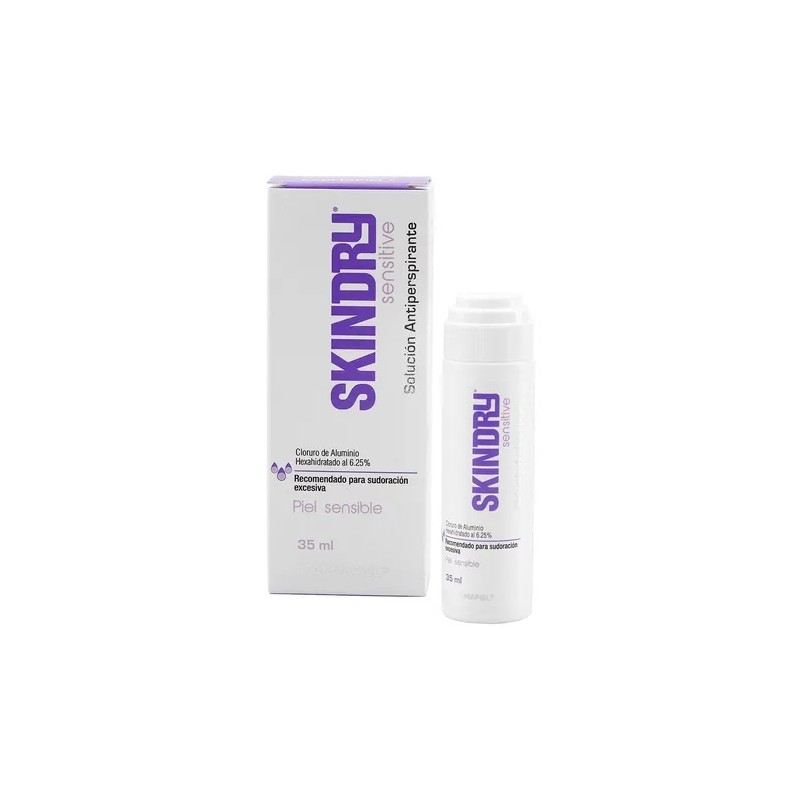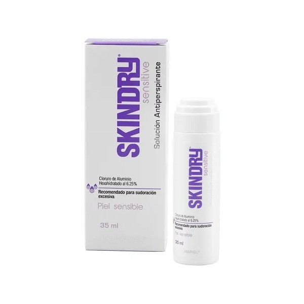 Skindry es un antiperspirante con efecto secante de uso tópico, indicado en el control de la sudoración de moderada a severa, en zonas como: axilas, palmas de las manos, espalda, cuero cabelludo y plantas de los pies. Recomendado para pieles sensibles.