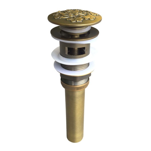 Antique Brass Pop-Up Sink Drain Decorative Carved