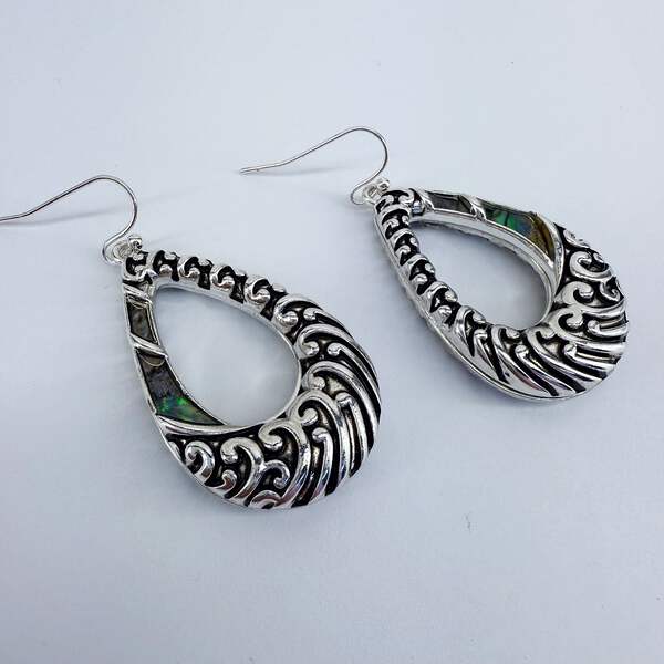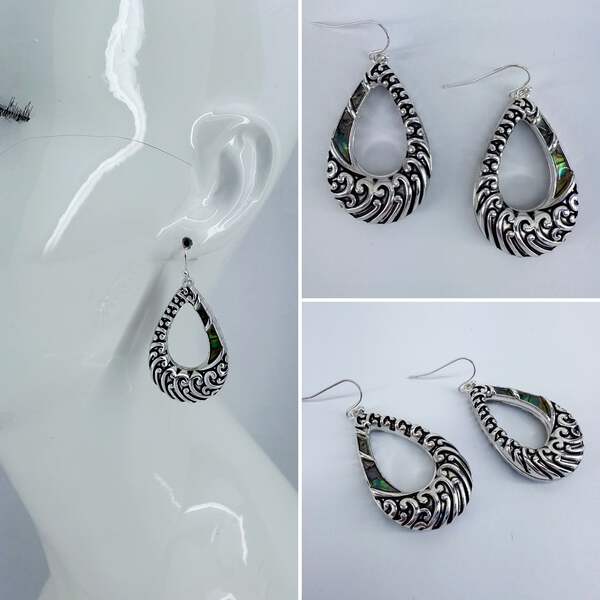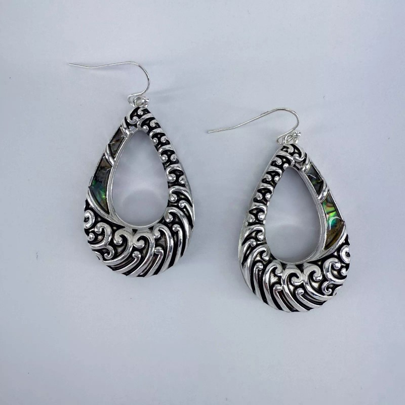 Antique Silver Finish Avalone Teardrop Dangle Design Earrings