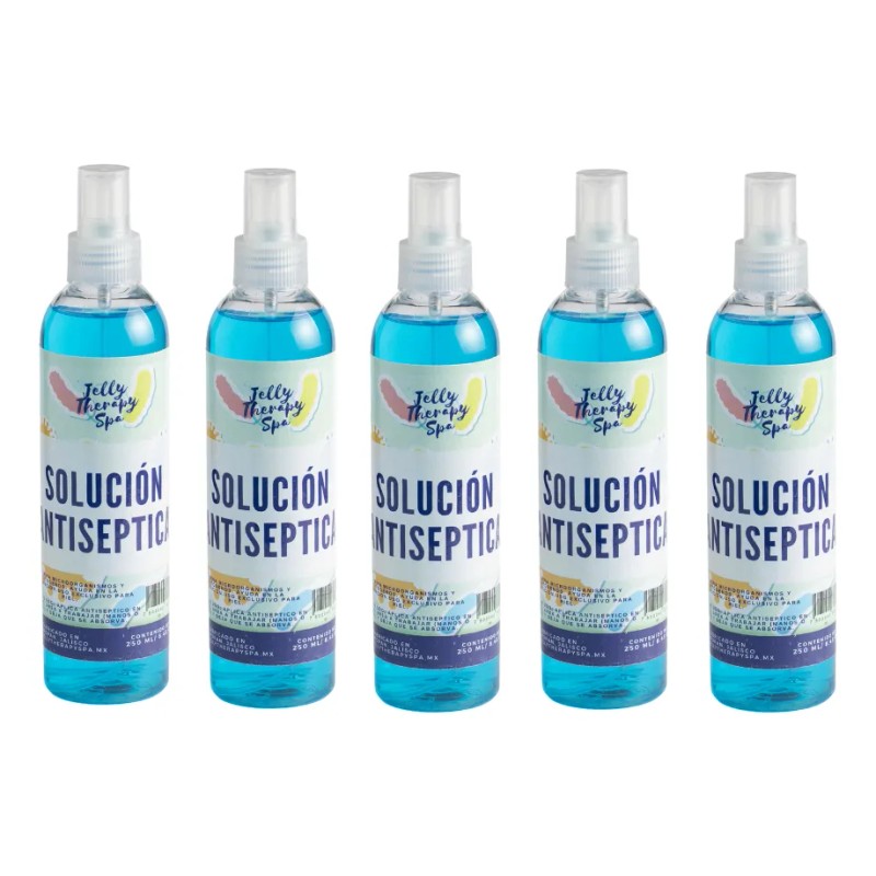 Recibe 5 botellas de 250 ml cada una, asegurando que siempre tengas a mano la protección que necesitas para mantenerte saludable y radiante. ¡Descubre la tranquilidad de un cuidado completo con nuestra solución antiséptica! 💧👐