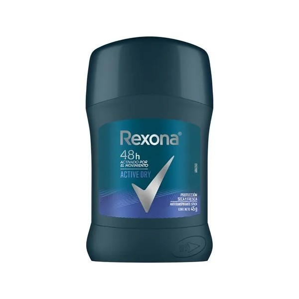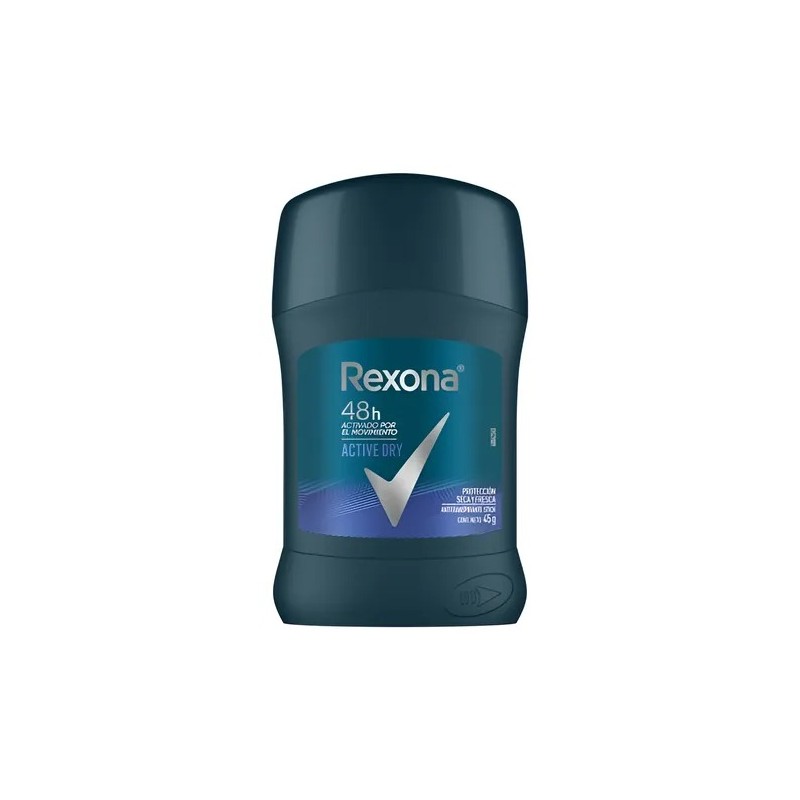 Que el sudor y el mal olor no te detengan. Nuestro Desodorante Antitranspirante Rexona Active Dry en Stick para hombre te brinda 48 h de protección contra el sudor y doble protección contra el mal olor, manteniéndote en movimiento, porque si tu no paras, el nuevo Rexona tampoco. Rexona no te abandona.