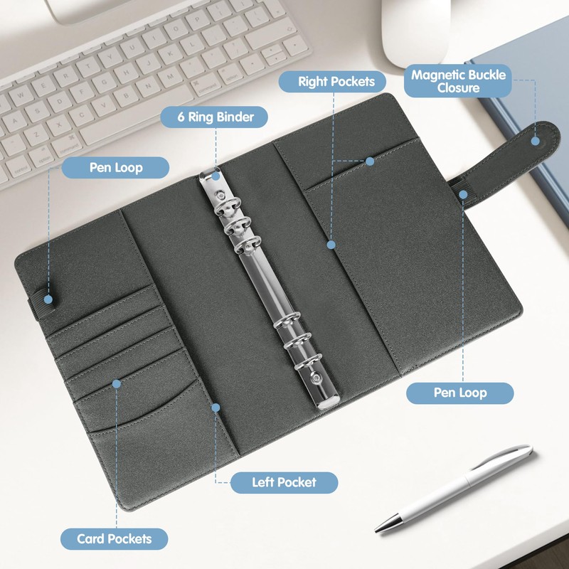 - Premium PU Leather Material: Crafted with durable and stylish PU leather, this A5 binder features a 6-ring refillable design, so that you can change the refill pages as you like, allowing easy customization and expansion to grow with your collection