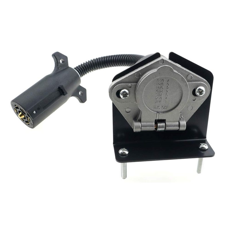 AnTo 7 RV Blade to 7 Pole Round RV Trailer Plug Wire Harness Electrical Quick Converter Adapter with Connector Socket Mounting Bracket