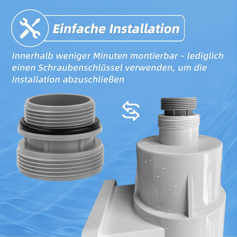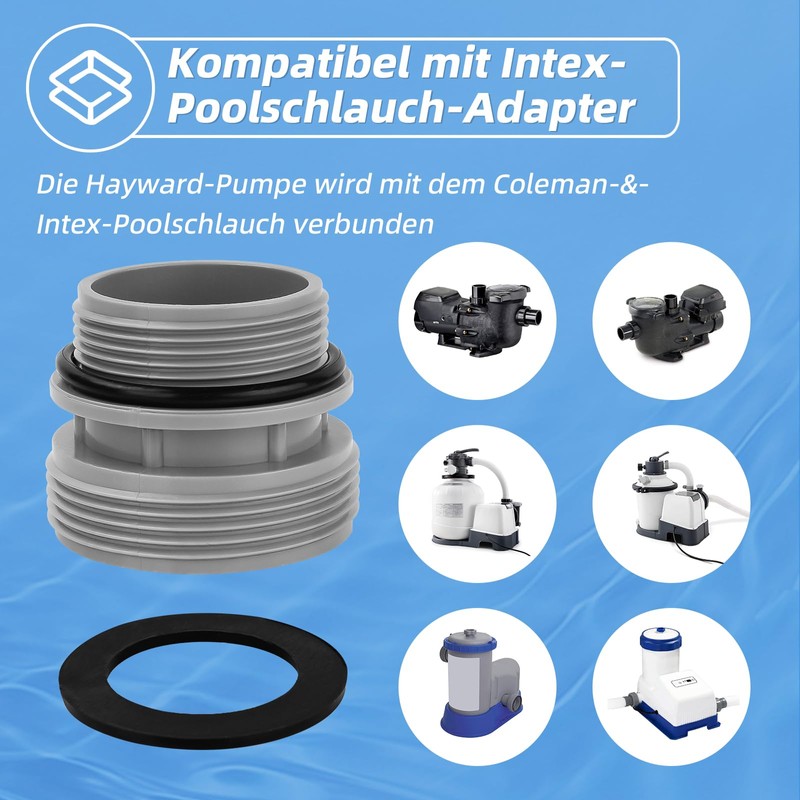 - Lieferumfang: Das Poolzubehör enthält-4x Schlauchanschlussadapter,4x O-Ringe,2x Rollen Teflonband,Komplettes Poolfilterschlauch-Umrüstset