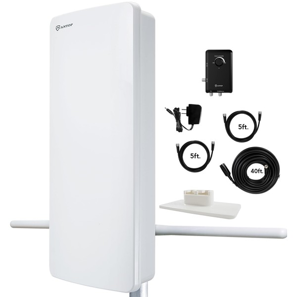 Antop AT-800SBS HD Smart Panel Antenna with Smart Boost System, VHF Enhanced Amplified Indoor Outdoor TV Antenna,Support 2TVs or A Second Device