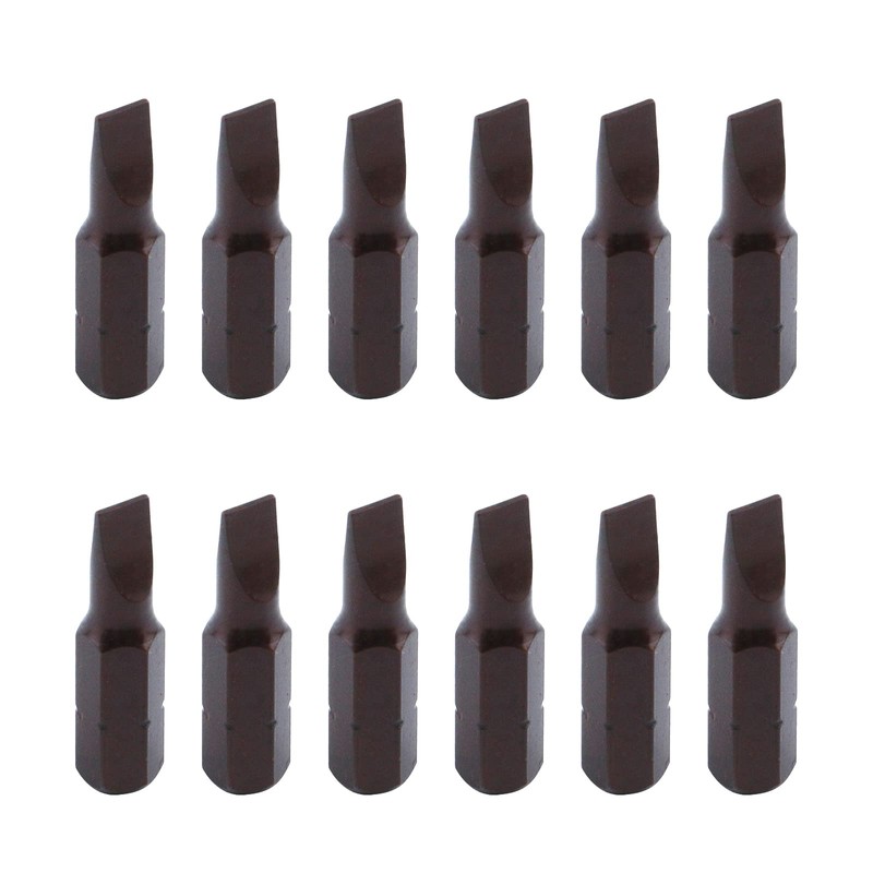 - 12pcs 5mm Slotted Tip Screwdriver Bits in plastic box.