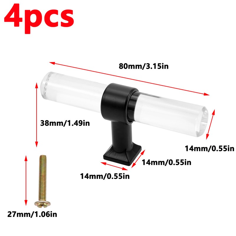 Antrader Acrylic Cabinet Knobs,4Pcs Hardware Kitchen Cabinet Knobs Acrylic Clear Crystal Drawer Pulls Drawer Knobs Acrylic Clear T-bar Knobs Single Hole,80mm Length
