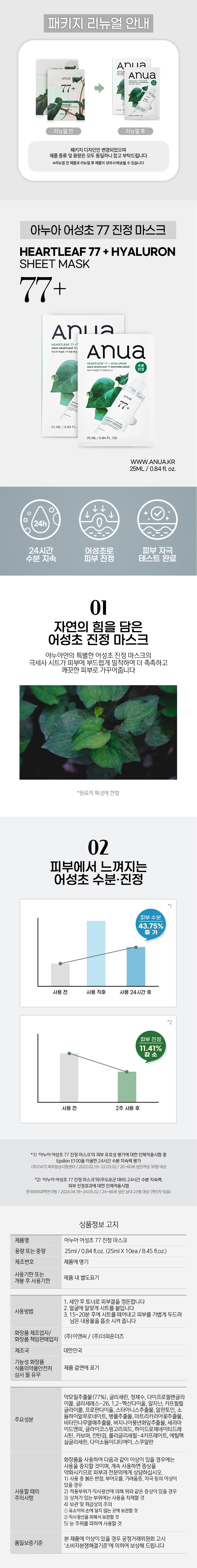 Anua 아누아 어성초 77 진정 마스크 10매 Anua Tea Tree 77 Calming Mask 10 Sheets