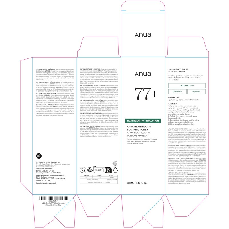 ANUA ANUA Heartleaf 77% beruhigender Toner, pH 5,5 Problempflege, beruhigt die Haut, erfrischend, feuchtigkeitsspendend, reinigend, tierversuchsfrei, vegan, 250 ml