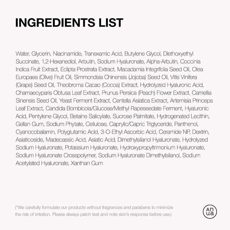 - KOREAN GLASS SKIN : Containing 10% Niacinamide, 4% Tranexamic Acid and 2% Arbutin, a powerful trio of ingredients to target dull skin, and enlarged pores.