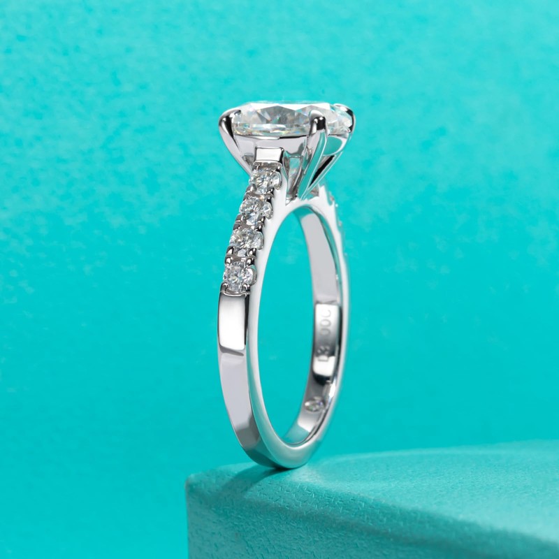 - CLASSIC DESIGN: Classic minimalist engagement ring design, center stone is 4ct D color moissanite plus 8pcs side stones total 4.248cttw, better to reflect lights in and out with this design. Timeless classical beauty boosts any casual or elegant formal attire, making you focus on the feast, banquet, meeting, dating, prom, party, or travel, just feel confident to wear it, and be ready to receive many compliments from your friends.