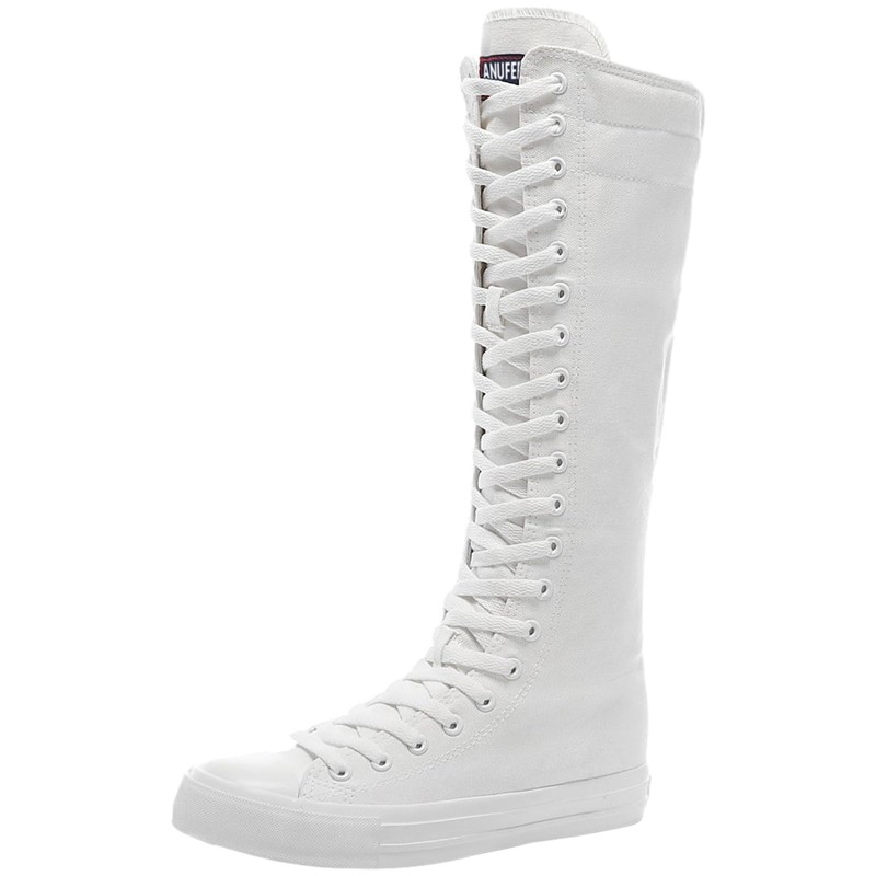 ANUFER Girls Women Fashion Canvas Knee Boots Pure White Zip Dance Boots SN811 US8.5