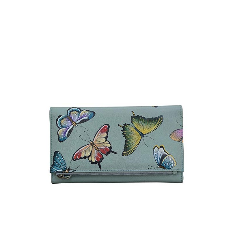 Anuschka Hand Painted Genuine Leather Clutch Wallet with Flap, Butterfly Heaven, School bag