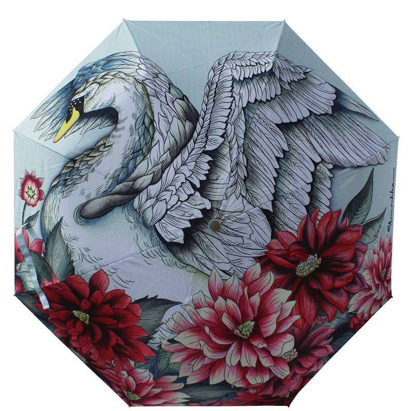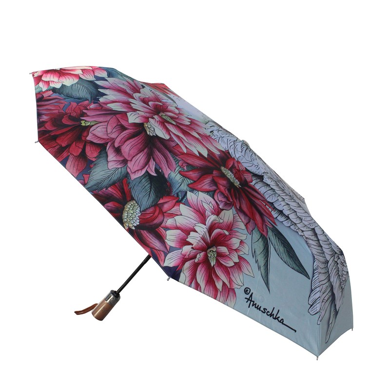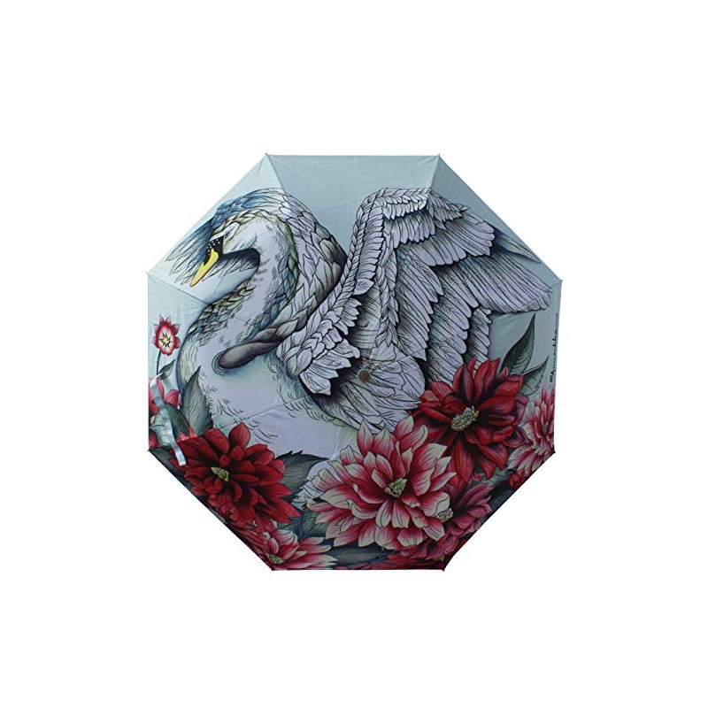 Anuschka Umbrella AUTO Open/Close - UPF 50+ Max Sun protection - 38” Waterproof Canopy - Fits in Handbag - Windproof Flexible Fiberglass - Swan Song