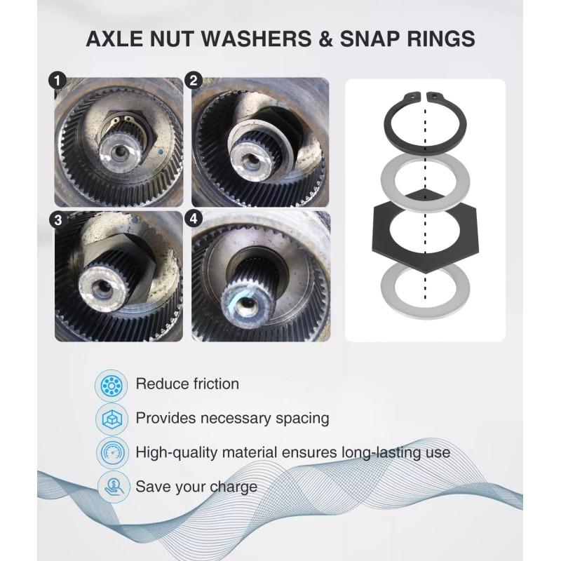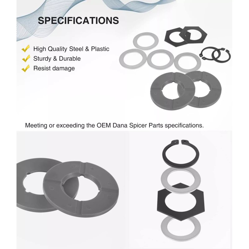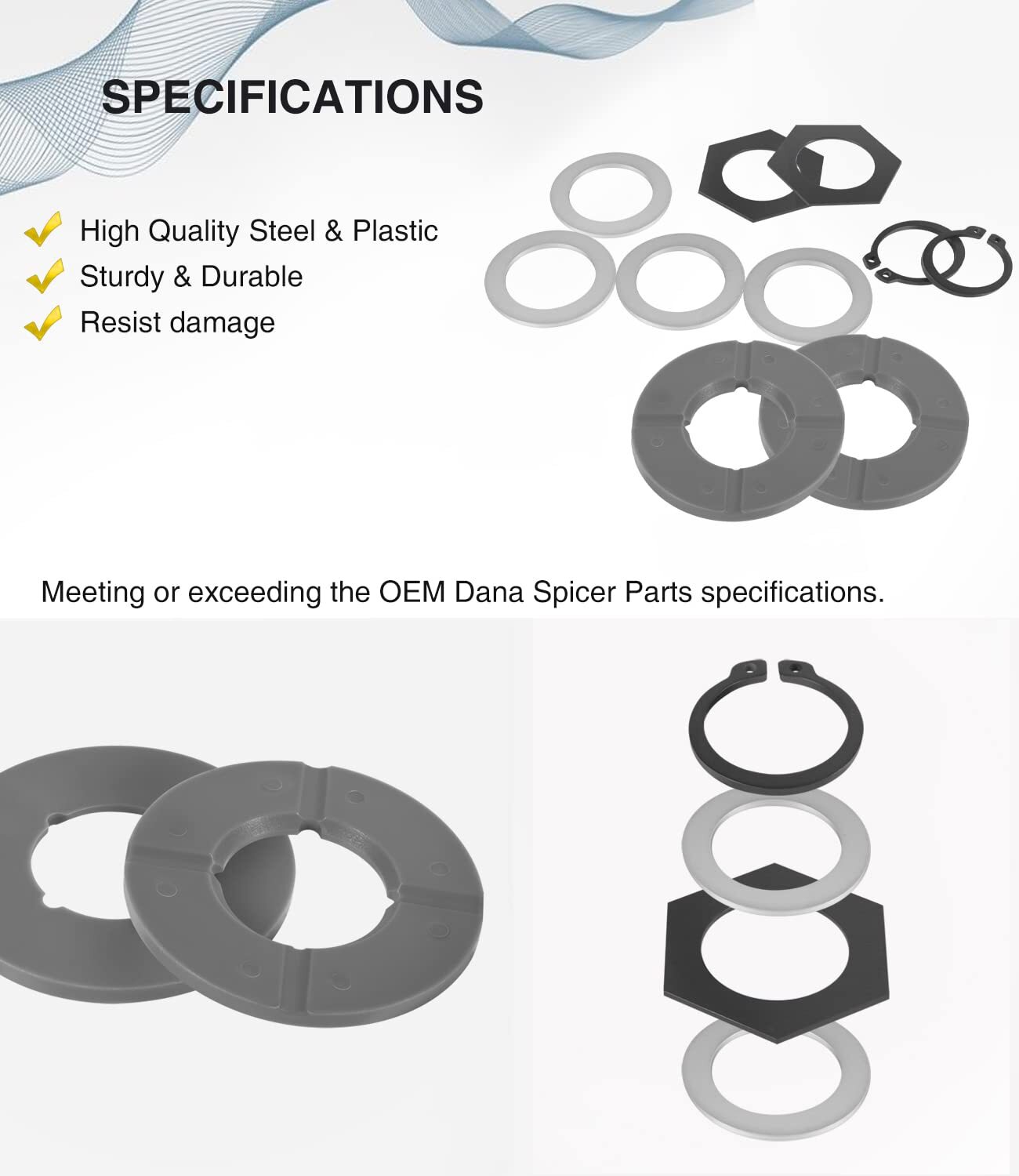 3.【Thrust Washer Snap Ring Kit】 The thrust washer snap ring kit provides necessary and proper spacing and reduce friction. High-quality material. Durable, reliable and long-lasting use. Keeps your vehicle in top condition.