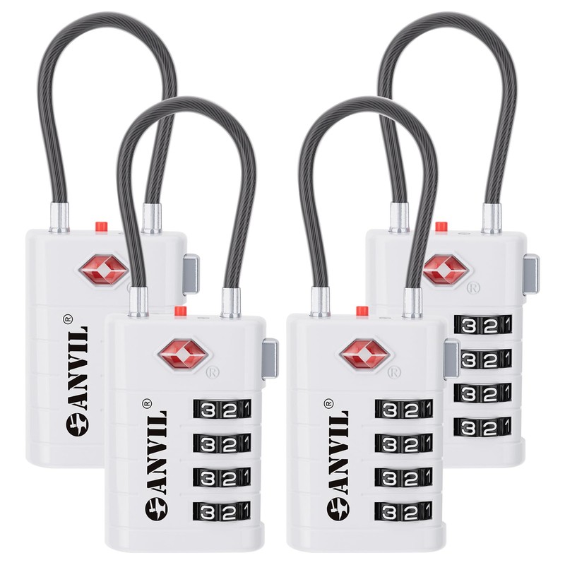 ANVIL 4 Digit Luggage Locks, TSA Locks for Luggage, Advanced TSA008 core, Alert Indicator for Your Travel Lock, Suitcase Lock.(4, White)