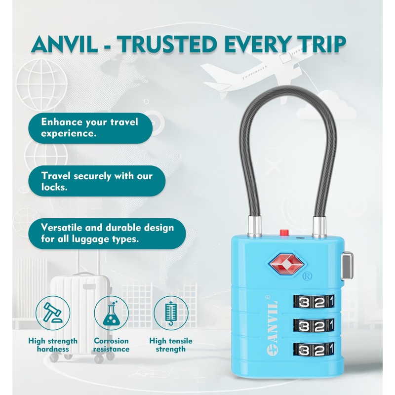 - ★ Easy-to-Set Personal Combination: The ANVIL Luggage Lock is designed for ease of use, featuring an easy-to-read dial for quick and accurate combination setup. As one of the top TSA-approved suitcase locks, it ensures no errors while setting your personal code.