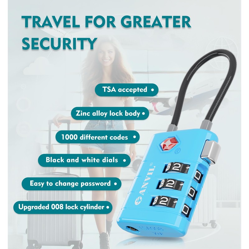 - ★ Enhanced Security with TSA008 core: The ANVIL Luggage Lock, one of the top TSA-approved locks for luggage, features the industry-leading TSA008 core. This advanced internal mechanism significantly prevents unauthorized access, making it a reliable choice among luggage locks.