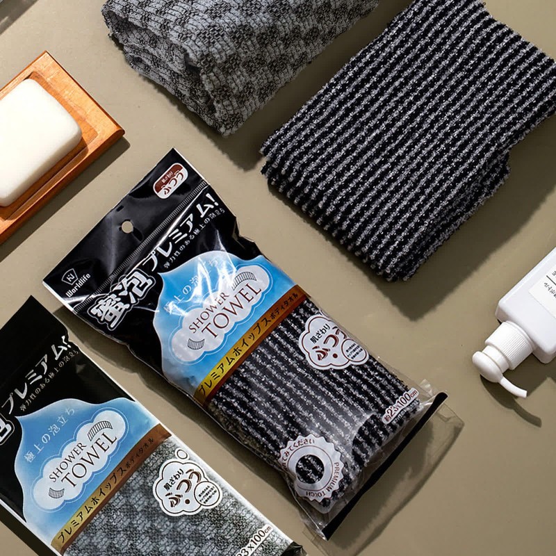 - PACKAGING CONTENT: 2 Pcs japanese exfoliating shower towel (striped black and white+anions),A full 39.4" makes it easier to for cleaning the back