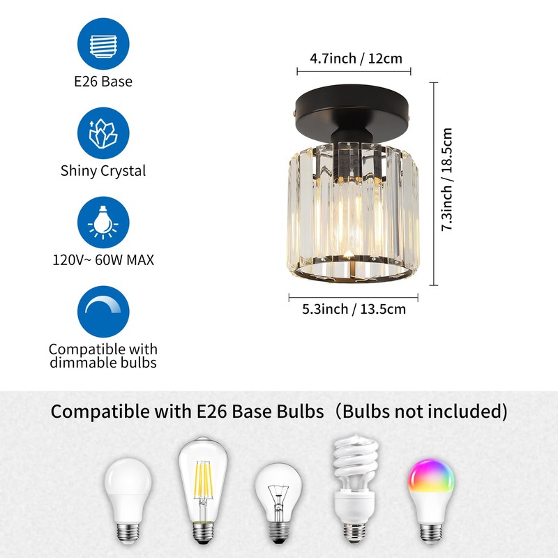- 【Easy Installation】This crystal black room light fixture is simple and stylish, and can be installed in a few minutes. All accessories are included.