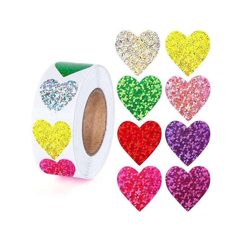 Anwyll Heart Stickers - 500Pcs 1Inch Valentines Day Heart Stickers Glitter Colored Heart-Shaped Sticker for Kid Reward Classroom Self-Adhesive Love Incentive Sticker for Envelope Seal Birthday Wedding