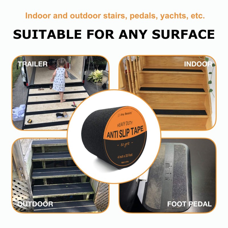 Any Beauty 4"x33' Anti Slip Tape 80 Grit Non Slip Skid Heavy Duty Stair Treads, Anti-Slip Safety Roll,Grip Strip Non-Slip Traction Step Tape, Friction, Indoor/outdoor,Baby/elder/pet, Black