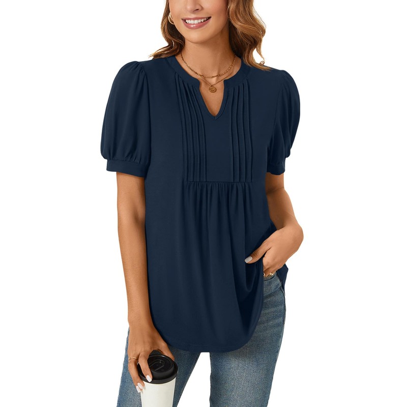 - Chic Design: Casual style T-shirts, loose fit blouse, v neck business casual tops tee, pleated both front and back. The sleeves add just the right touch and will not restrain your arms and create a slimming look.
