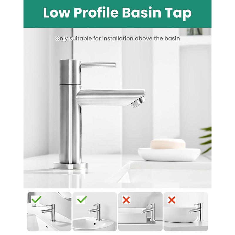• INSTALLATION AM WASCHBEH?LTER: Die H?he des Auslaufs des Wasserhahn Kaltwasser betr?gt 9,34CM, es handelt sich um einen kurzen Waschtischmischer, der nur fr die Installation am Waschbecken geeignet ist, er kann nicht neben dem Waschbecken installiert werden.