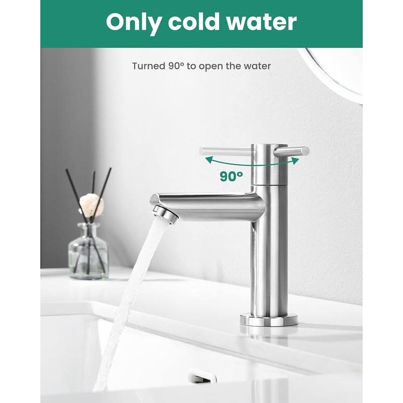 • UR KALTES WASSER: Der Kaltwasserhahn kann in Badezimmern, G?ste WC, etc. verwendet werden, nur kaltes Wasser, so dass es nur 1 Zulaufschlauch gibt. Der Wasserhahn Bad mit hochwertiger Kartusche und keramischen Dichtungen gew?hrleistet die beste Wasserqualit?t.