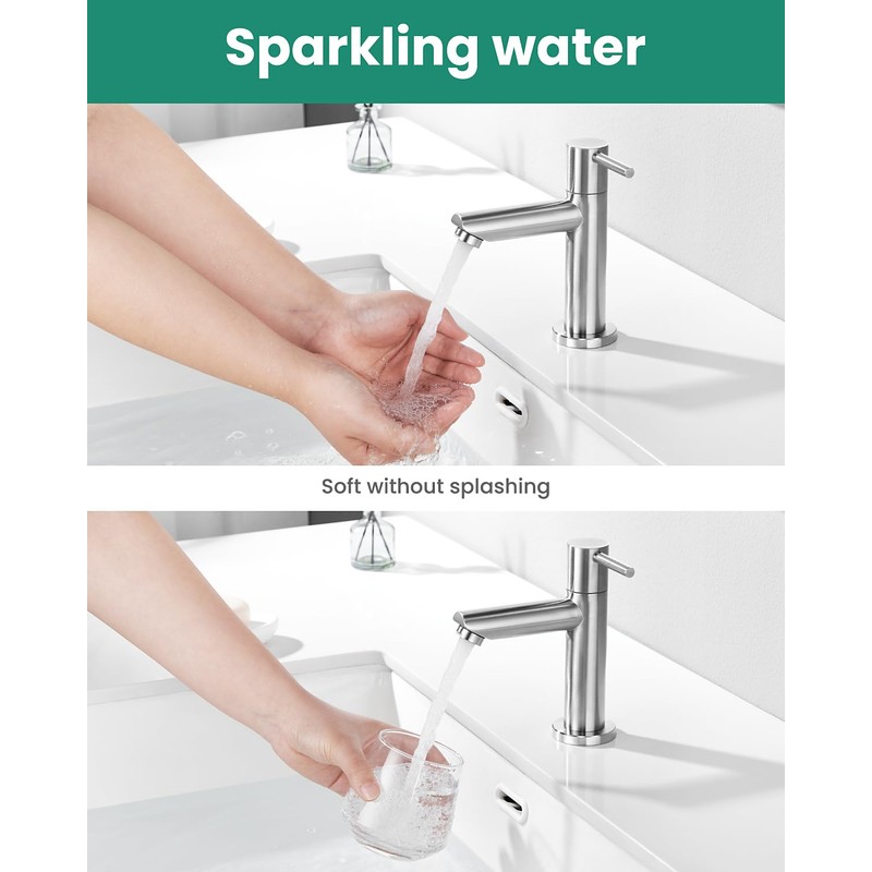 • EDELSTAHL-MATERIAL: Der Kaltwasserhahn g?ste wc ist aus 304 Edelstahl, 100% blei- und nickelfrei, sicher und langlebig; die Oberfl?che ist aus gebrstetem Edelstahl, Anti-Fingerabdruck und Anti-Kratzer.