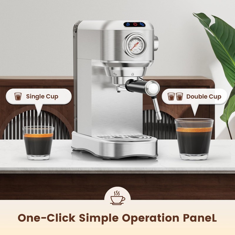 ANYCOLD Espresso Machine 20 Bar, Compact Espresso Maker, Stainless Steel Expresso Coffee Machines with Steam Milk Frother & 34oz Removable Water Tank for Home Latte, Cappuccino, Silver