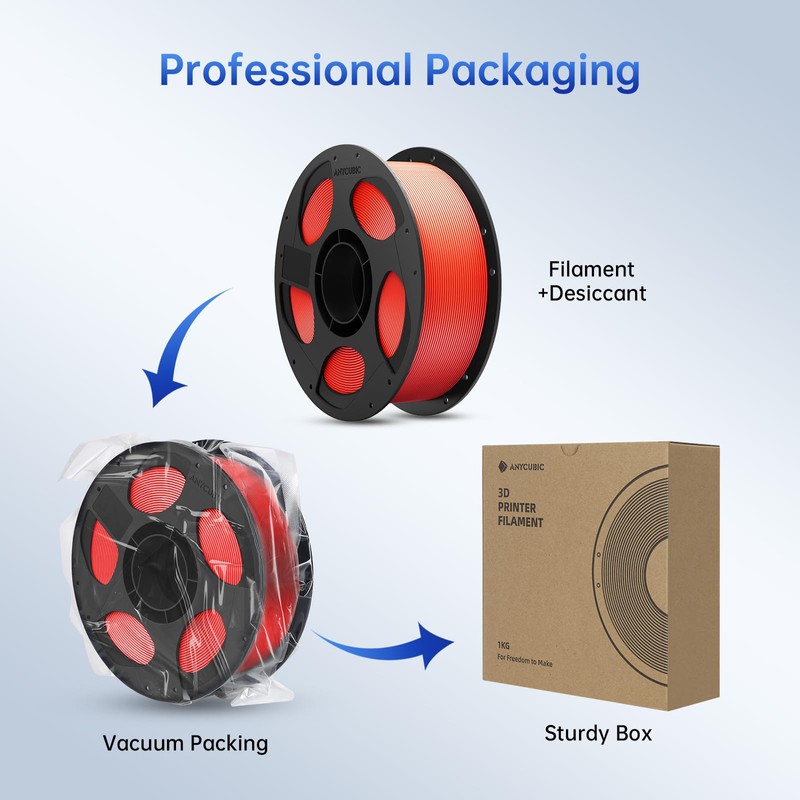 - 【 Without Tangle Hassles】Anycubic 3D Printing PLA Plus Filament is without tangle hassles on the roll and easily left the spool without crossing turns which can result in less thread pulling and twisting, no clogging. Besides, it can easily lock the filament after use.