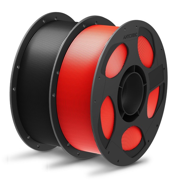 ANYCUBIC PLA Plus (PLA+), 3D Printer Filament 1.75mm Bundle, High Toughness, Dimensional Accuracy +/- 0.02mm, Print with Most FDM 3D Printers, 1KG Reusable Spool, 2kg, Black + Red