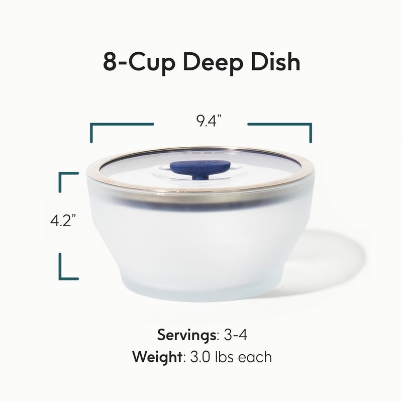 - Large Deep Dish: This convenient lidded glass storage container perfectly caters to your cooking needs, whether steaming, oven roasting, reheating, serving, or storing food; Craft delicious one-dish meals, perfectly cooked rice, and hearty soups