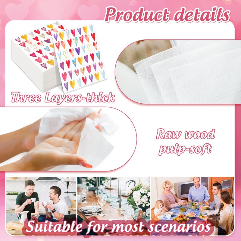 - WIDE APPLICATION: Suitable for Valentine’s Day, wedding, anniversary, birthday and other occasions, great for dining, hand cleaning, beverages, etc., and can be also used as ordinary napkins for your home