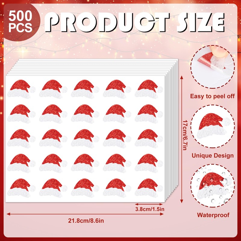 In total 500pcs of delicate Santa hat stickers made of premium paper material, you will not easily run out with such a rich quantity and you can share with others.