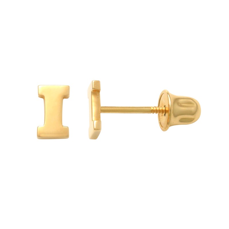 ANYGOLDS 14K REAL Solid Gold Initial Stud Style I Earrings – Post Earrings with Secure Screw Back – Ideal for multi Piercings - Perfect for Minimalist Design - Sold as a Pair