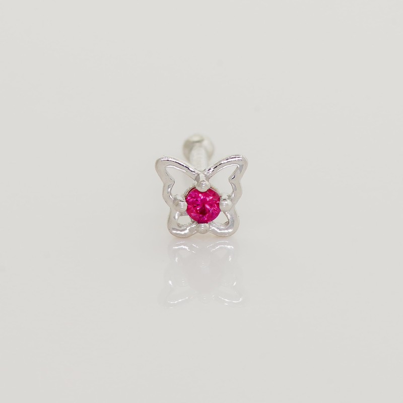 14k Solid Gold Ruby Butterfly Nose Bone Stud, Red Butterfly Dainty Body Jewelry Nostril Piercing 21gauge, Nostril Straight
