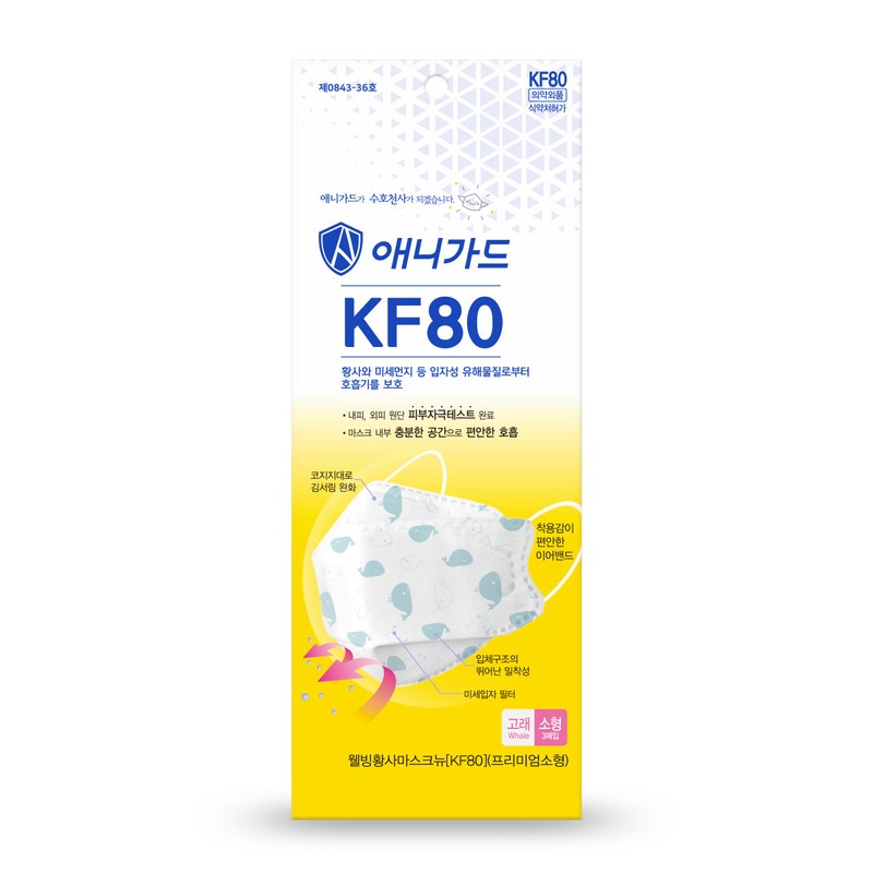 Anyguard Wellbeing Yellow Sand Mask New [KF80] (Premium Small) Whale 60 sheets (3 sheets x 20 pieces) / 애니가드 웰빙황사마스크뉴[KF80](프리미엄소형) 고래 60매(3매입x20개)