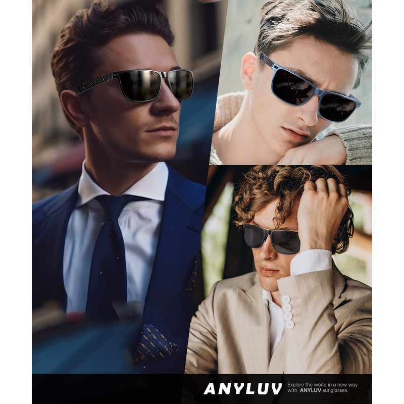 ANYLUV Polarized Sunglasses for Men Premium Al-Mg Frame Square Men’s Sunglasses UV Protection for Fishing