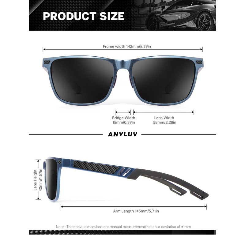 - 👓【After-Sales Brand Service】Gift packaging: Polarized Sunglasses*1, Glasses Case*1, Microfiber Glasses Cleaning Cloth*1, Packaging Box*1. It also comes ready-to-gift-wrapped, making it a wonderful and functional gift idea for friends and family! ANYLUV attach great importance to product quality and customer satisfaction. Each ANYLUV customer can enjoy after-sale brand service for our dark shades. Please feel free to contact our customer service if you have any product problem.
