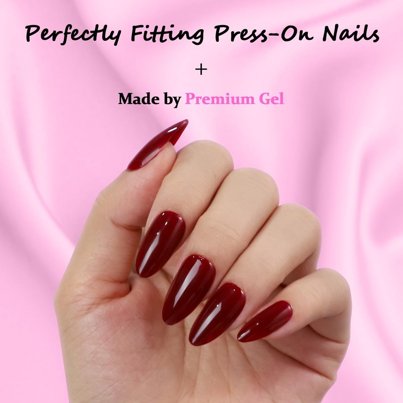 Anyos 16 Sizes Medium Almond Valentine's Day Press on Nails, Soft Gel Fake Nails,Reusable Nail Kit with Nail Glue Adhesive Tabs Double-sided Nail File, Fasle Nails 32 Pcs (Velvet Red)