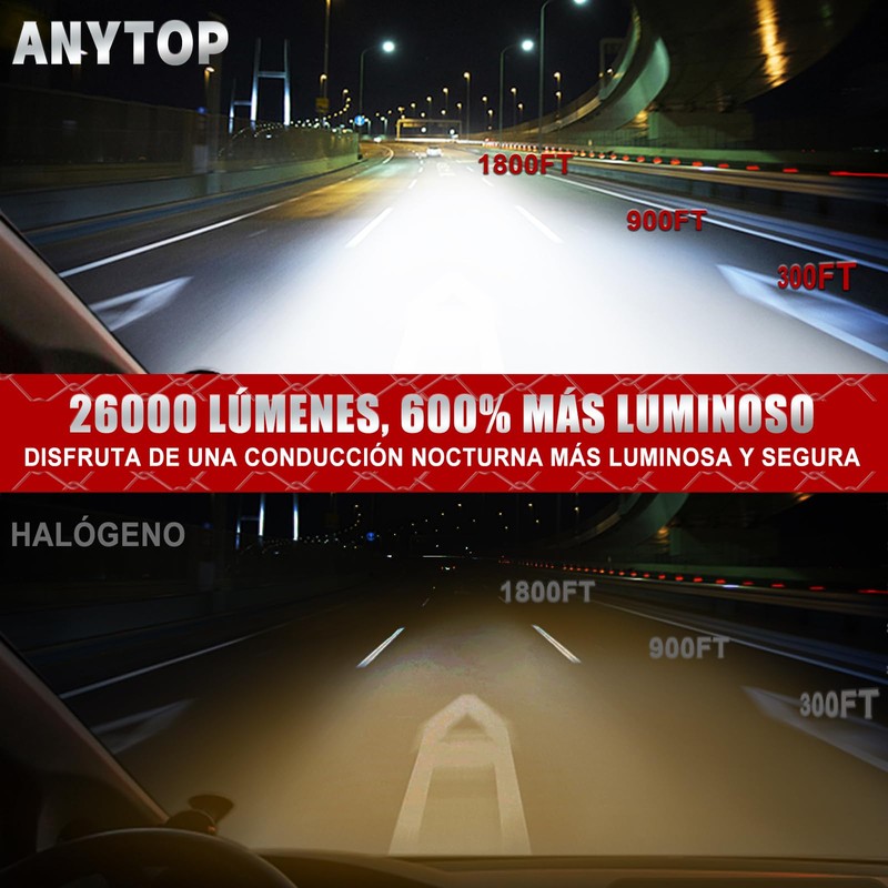 ANYTOP H4 Led Bombillas para Auto Delanteros Faros,HB2 9003 Luz Alta Y Baja,160W 26000LM 6500K Luz Blanca,600% SúPer Brillante Luces Led Kits de Conversión,Impermeables Focos Auto,2 Unidades