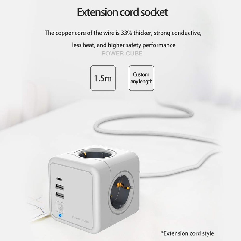 - Conveniently small-sized: the cube socket has a small, vertically-integrated design that does not take up space. The plug eliminates the need for multiple wires and ensures fast charging along with multiple protective functions and safety guarantees for a safe and worry-free charge each and every time. The small smart cube keeps the table top organised.