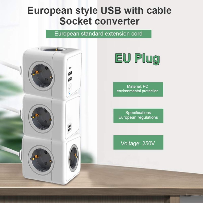 Name: creative socket converter cube with USB, European standard extension cable connector