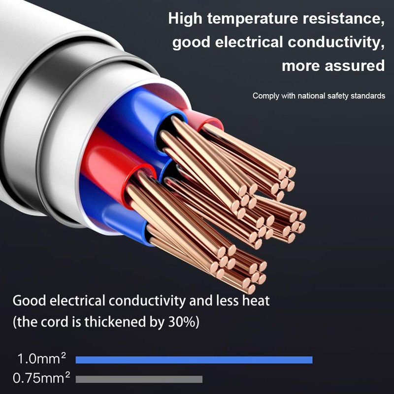 - 750℃ -fire-proofing agent: high temperature resistant PC/ABS material that prevents safety risks. The product has passed the 750℃ -high temperature glow wire test and meets the national safety standard. The wire core is 33% thicker, has good electrical conductivity, high temperature resistance and is safer.