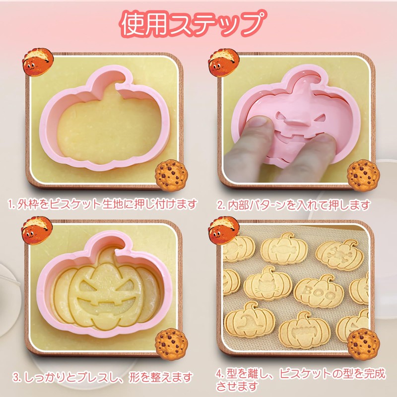 - 【可愛い&怖いデザイン】かぼちゃお化け(ジャック・オー・ランタン)、こうもり、魔女の帽子など、人気の定番モチーフをラインナップ。本格的な万聖節の雰囲気を、お菓子作りで楽しく演出できます