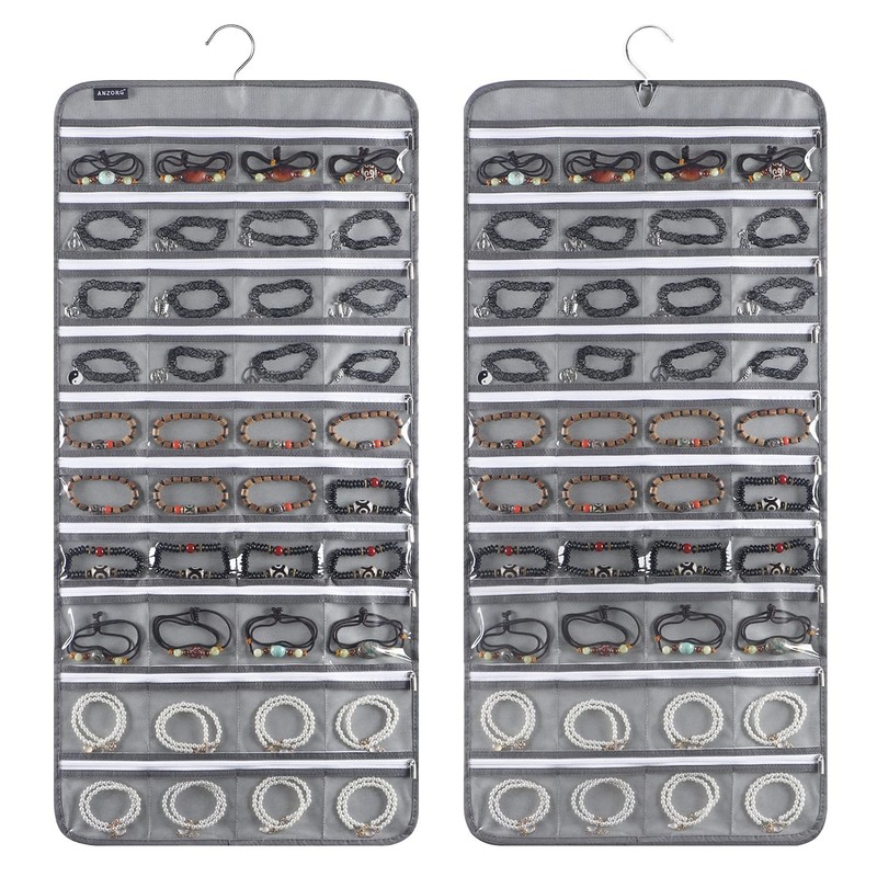Try to use our ANZORG Dual-sided Hanging Jewelry Organizer with Zippered Pouchesto quickly see and pick all your jewelries: